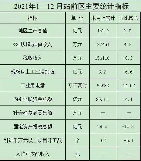 (營口市)站前區(qū)2021年1—12月主要統(tǒng)計指標