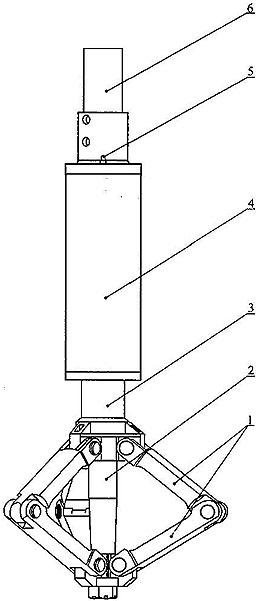 1—三岔擠擴(kuò)臂;2—內(nèi)活塞桿;3—外活塞桿;4—缸筒;5—油管;6—接長(zhǎng)桿