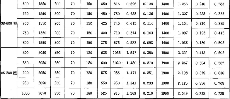 4 根據(jù)落差并由承力盤(pán)腔直徑與落差關(guān)系表可查出相應(yīng)的承力盤(pán)腔直徑。