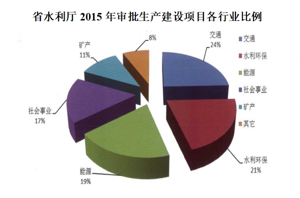 2015年省水利廳審批水土保持方案119個(gè),其中:交通29個(gè),水利環(huán)保25個(gè),能原23個(gè),社會(huì)事業(yè)20個(gè),礦產(chǎn)資源13個(gè),其它9個(gè)。