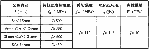 注:玻璃纖維筋抗拉強(qiáng)度標(biāo)準(zhǔn)值保證率在95%以上。
