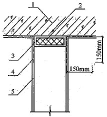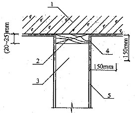 3—粘結(jié)石膏嵌縫抹平;4—粘貼耐堿玻璃纖維網(wǎng)布;5—裝飾面層