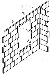 1—石膏砌塊砌體;2—洞口邊框;3—邊框?qū)挾龋?—邊框厚度