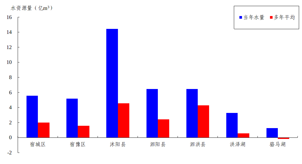 全市水資源總量55.104億m3 ,比多年平均值偏多105.2%,是2020年的1.26倍。其中,地表水資源量42.740億m3,地下水資源量14.826億m3,重復計算量2.462億m3。全市平均產(chǎn)水系數(shù)0.52,平均產(chǎn)水模數(shù)64.6萬m3/km2。(江蘇?。?021年宿遷市水資源公報