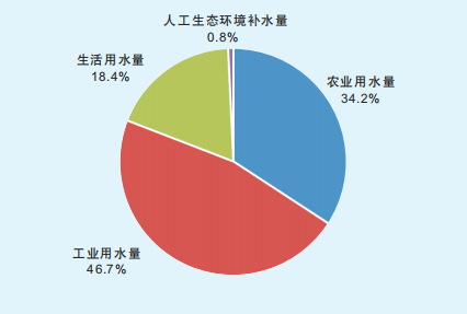 2021年全區(qū)總耗水量為2.6626億立方米,其中農(nóng)田灌溉耗水量為1.2572億立方米;林牧漁業(yè)耗水量為0.6019億立方米;電力工業(yè)耗水量為0.1588億立方米;一般工業(yè)耗水量為0.3412立方米;生活耗水量為0.2540億立方米;人工生態(tài)環(huán)境耗水量為0.0495億立方米。