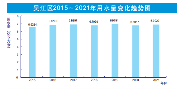 2021年吳江區(qū)總供水量為6.9029億立方米,均為地表水供水。