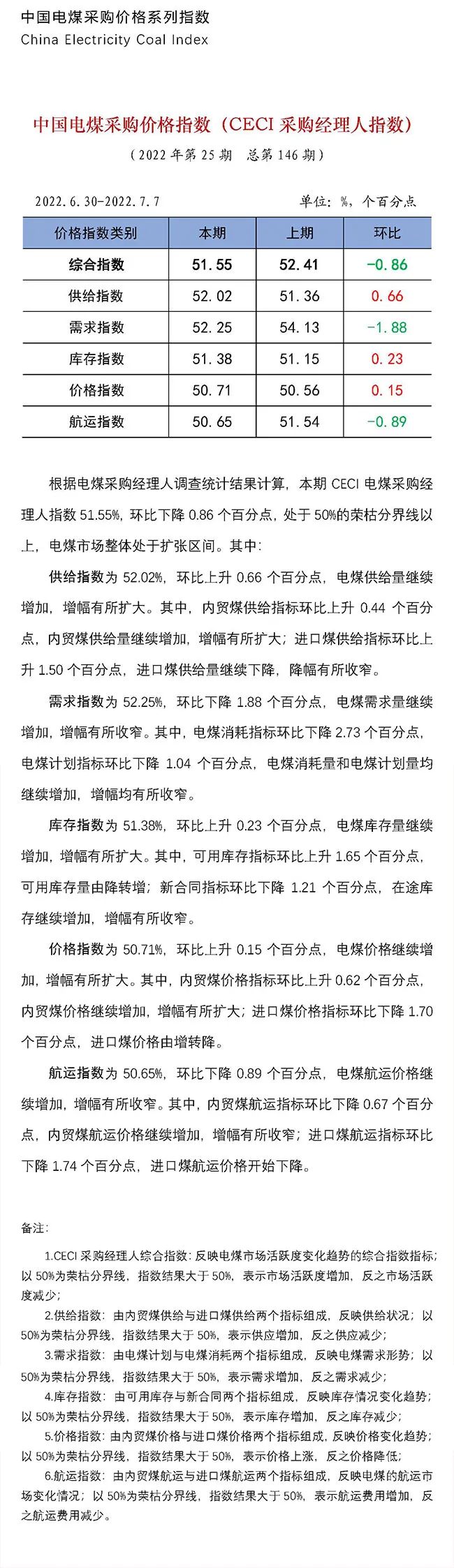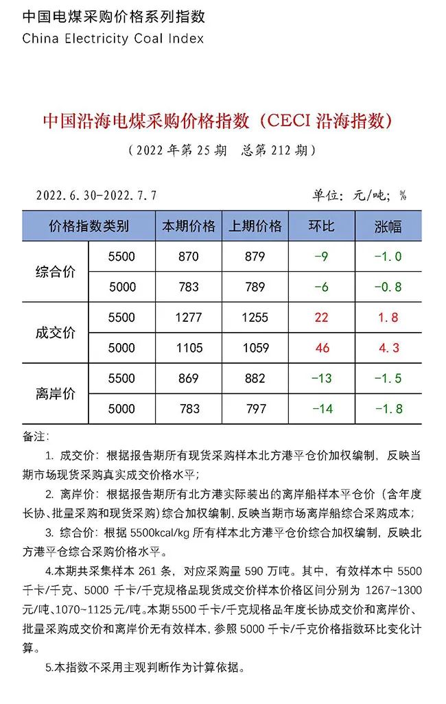 2022年|中國(guó)電煤采購(gòu)價(jià)格CECI系列指數(shù)(2022年6月30日-7月7日)