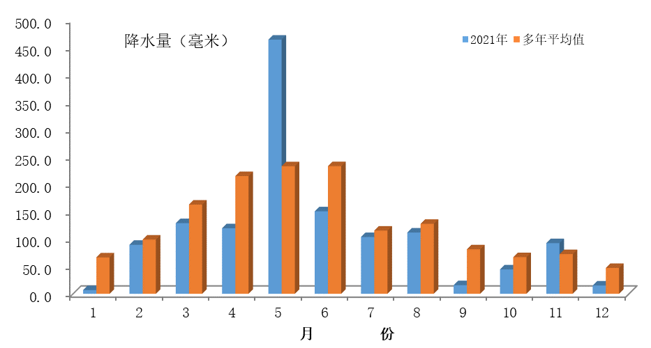 圖2.1.1 月降水量與多年平均值比較圖(吉安市)2021年吉州區(qū)水資源公報