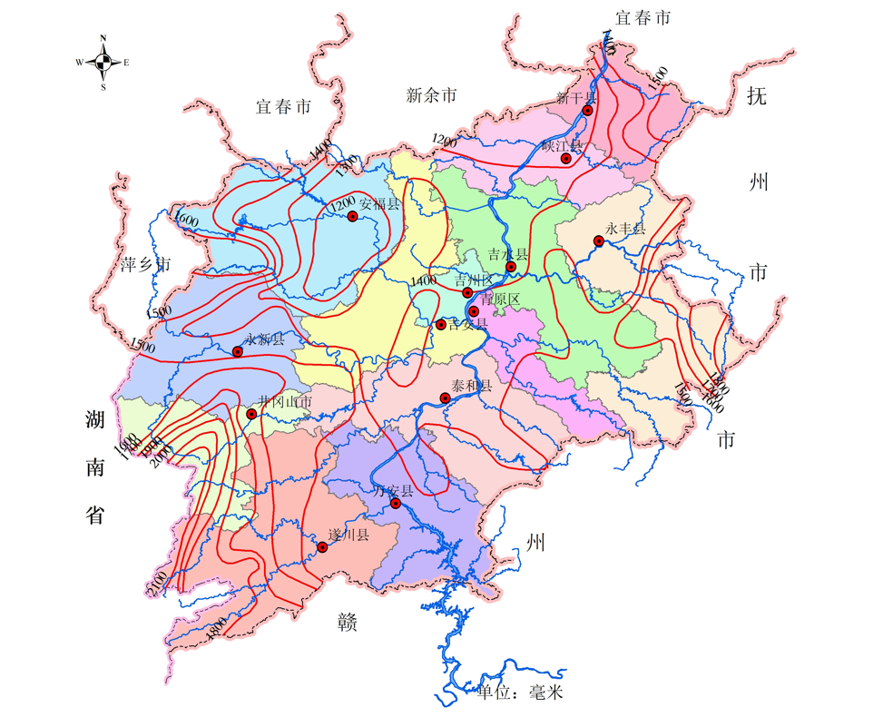 圖2.1.3 吉安市降水量等值線圖(吉安市)2021年吉州區(qū)水資源公報
