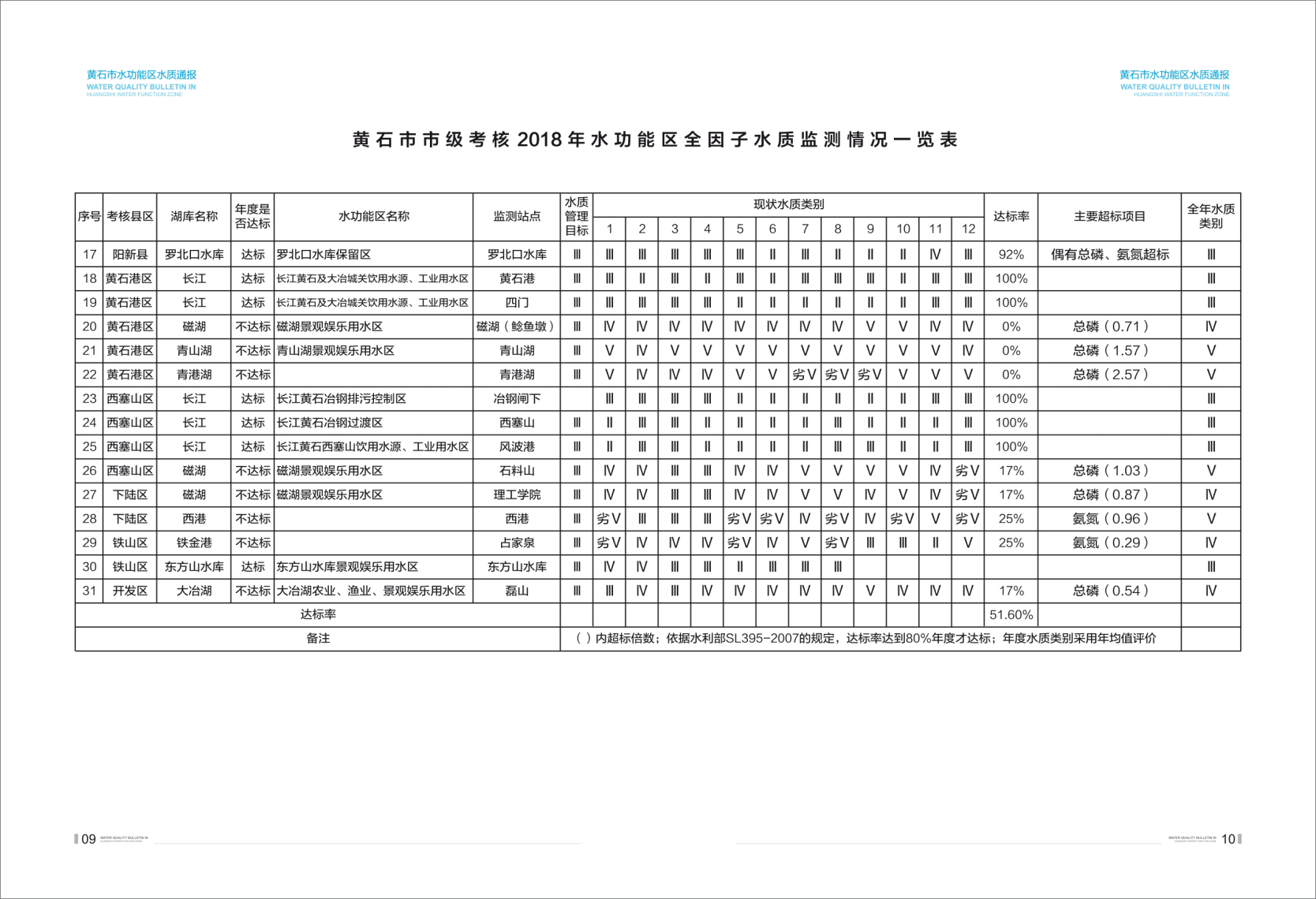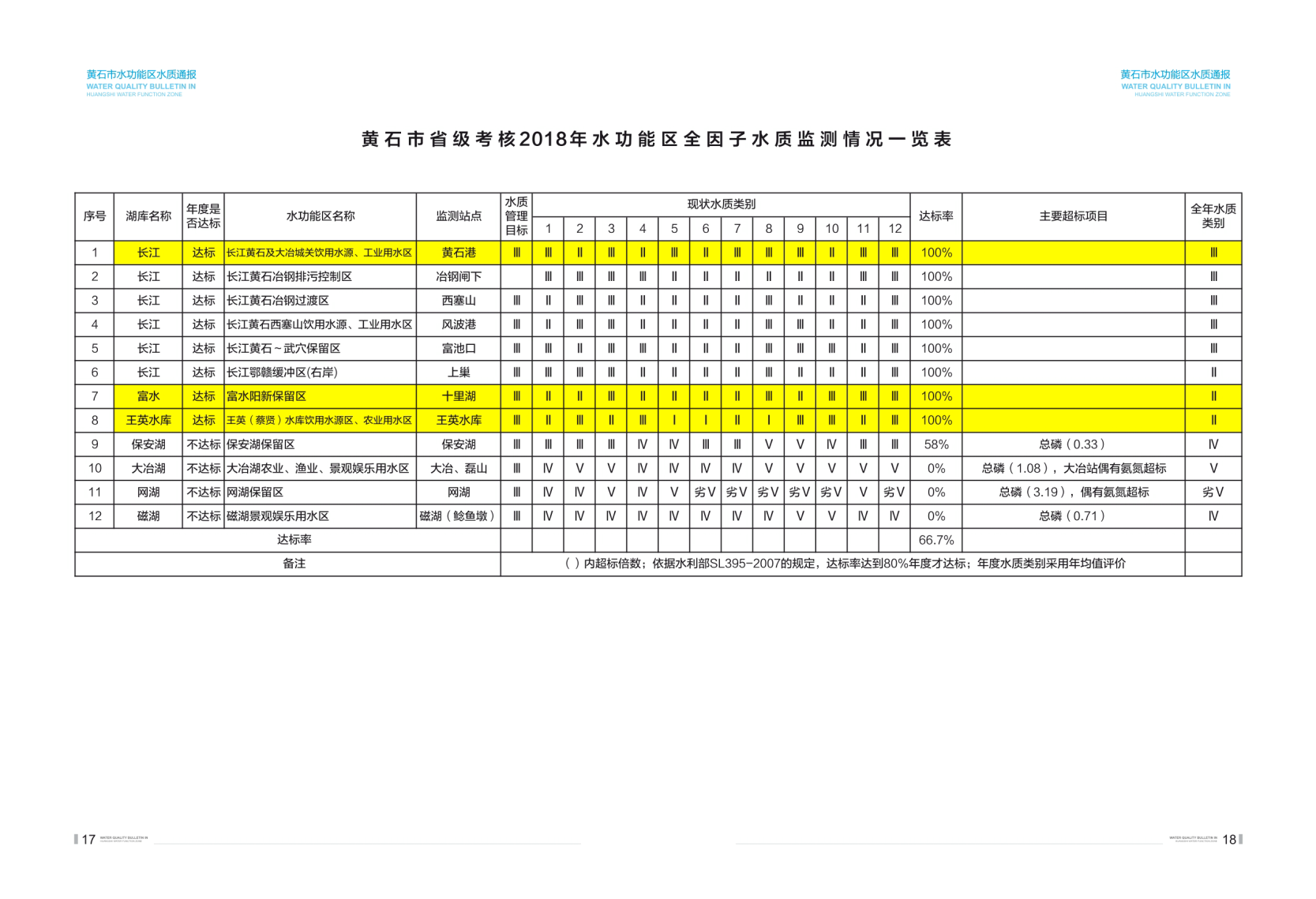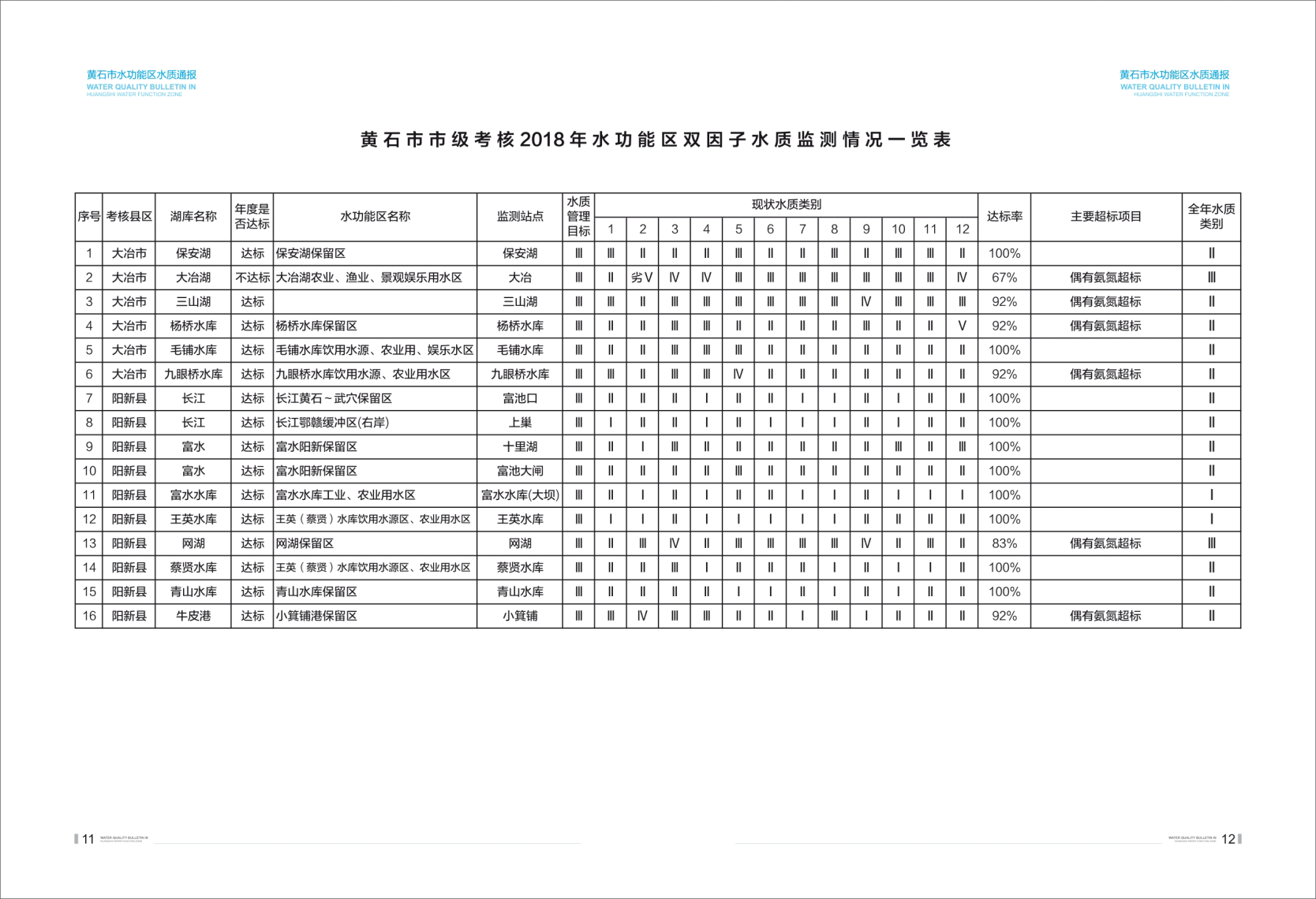 2018年黃石市水功能區(qū)水質(zhì)通報