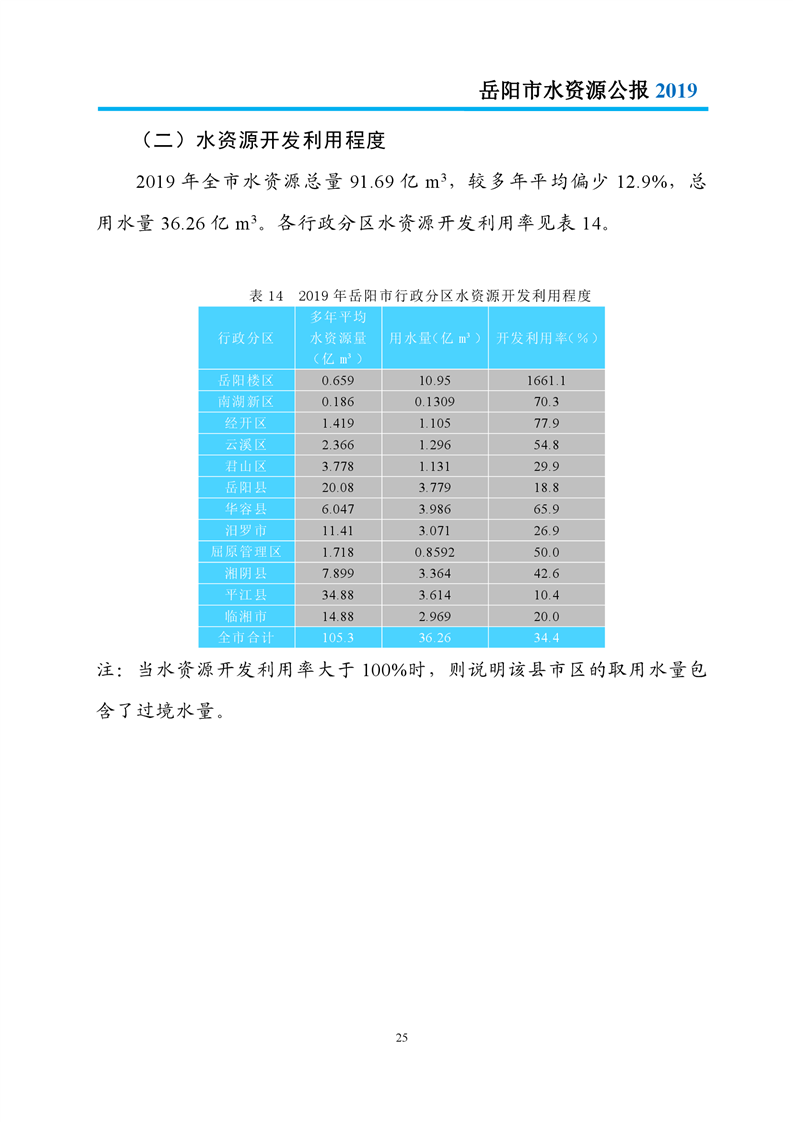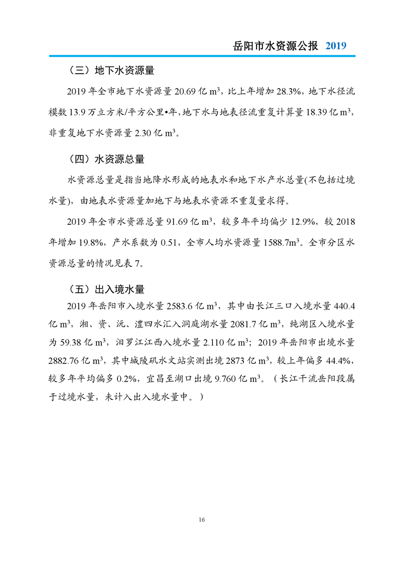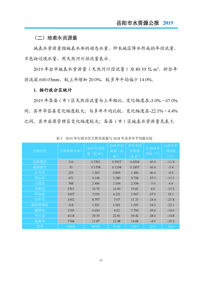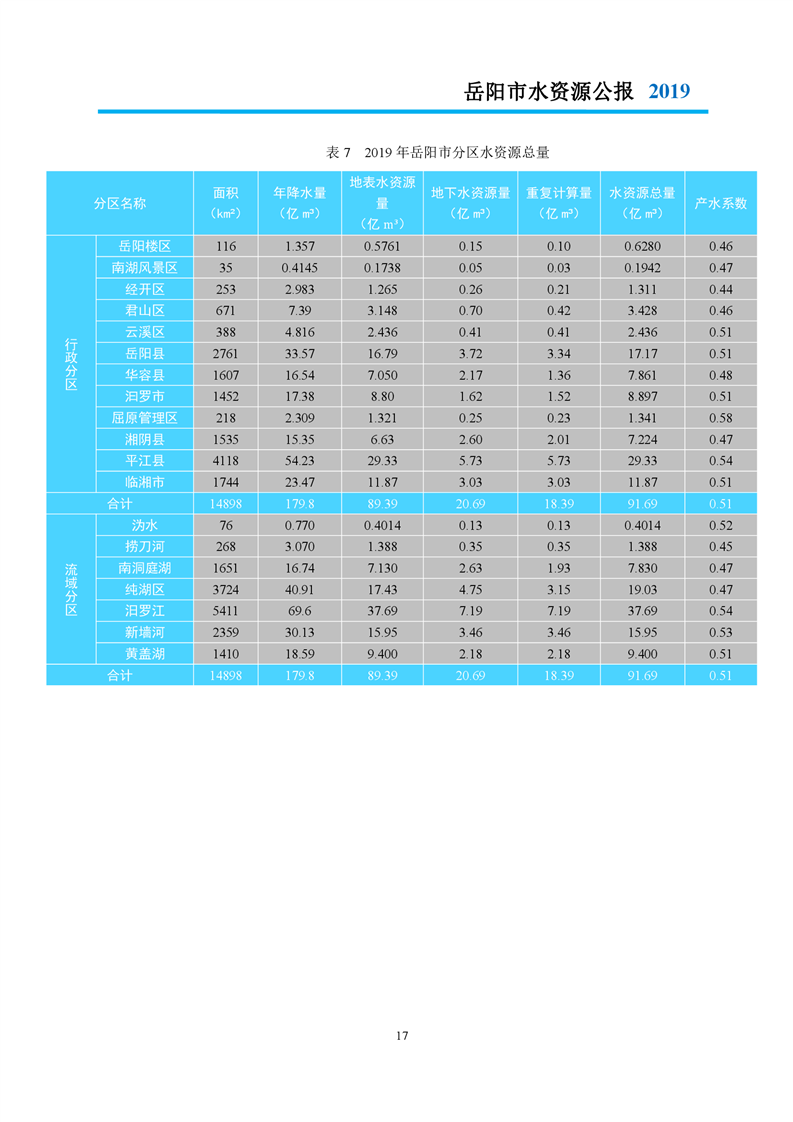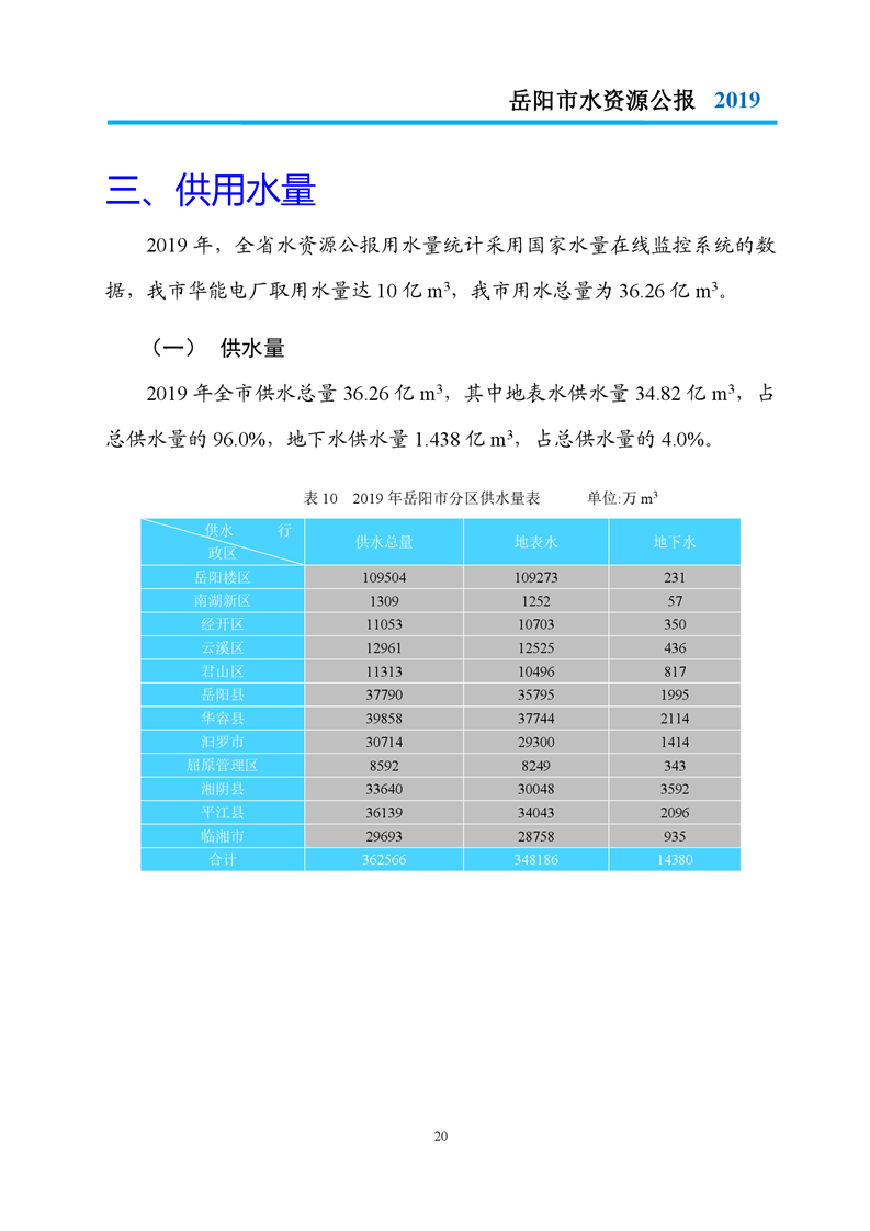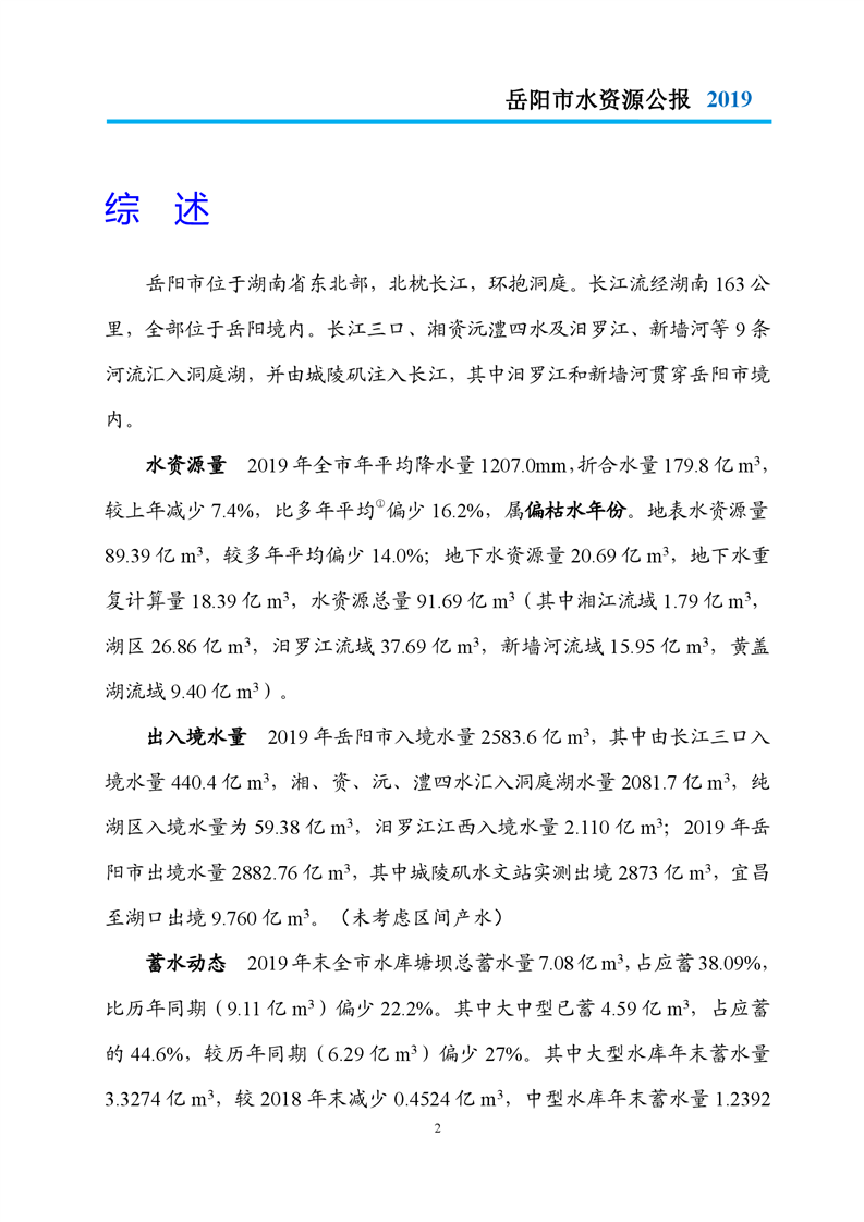 (湖南?。?019年岳陽(yáng)市水資源公報(bào)