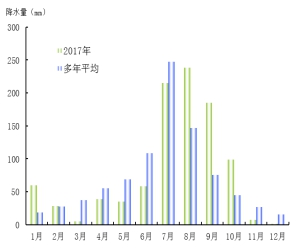 2017年全市平均降水量890.2 mm,比2016年多0.2%,較多年平均值多2.8%。