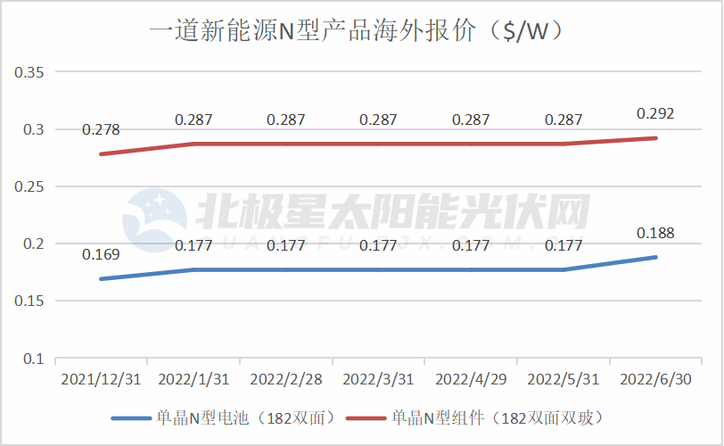 2022年一道新能N型產(chǎn)品價(jià)格走勢(shì)如下: