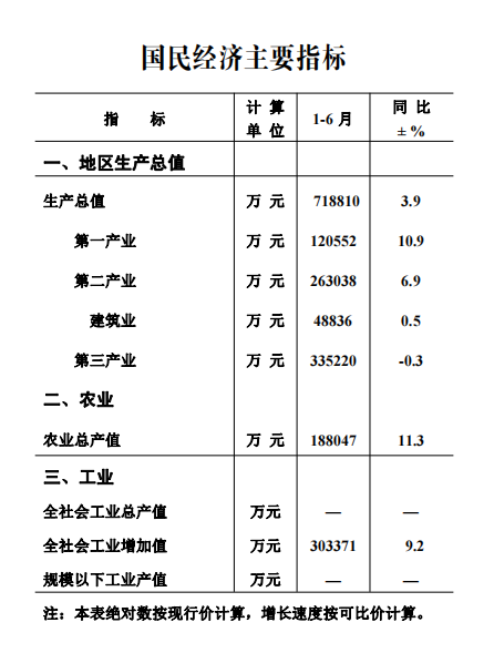 根據(jù)河源市地區(qū)生產(chǎn)總值統(tǒng)一核算結(jié)果,2022年上半年我縣地區(qū)生產(chǎn)總值為71.88億元,同比增長3.9%。其中,第一產(chǎn)業(yè)增加值為12.06億元,同比增長10.9%;第二產(chǎn)業(yè)增加值為26.30億元,同比增長6.9%;第三產(chǎn)業(yè)增加值為33.52億元,同比下降0.3%。