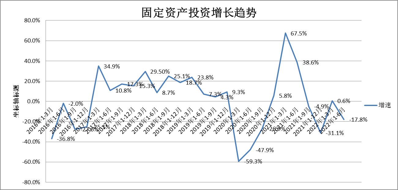 從增長(zhǎng)趨勢(shì)方面看,固定資產(chǎn)投資增長(zhǎng)波動(dòng)較大,一季度有所回升后,繼續(xù)下滑趨勢(shì)。