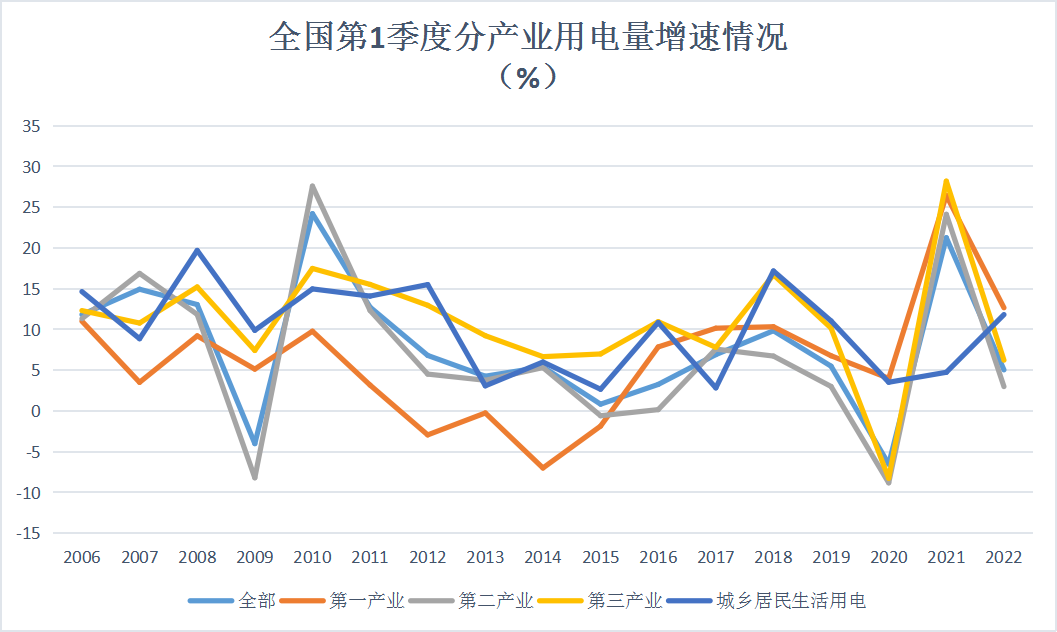 2022年|數(shù)據(jù) | 一季度全國分行業(yè)用電量增速排行