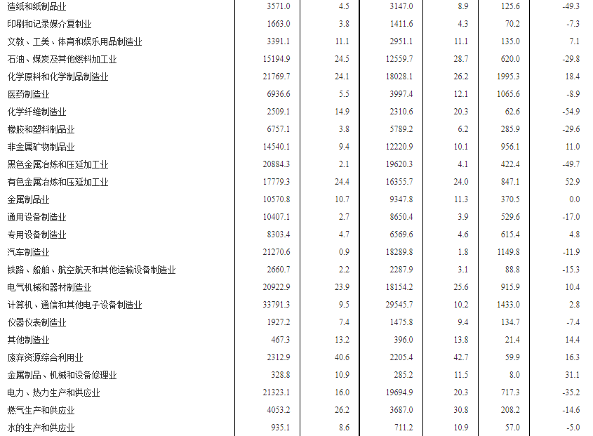 二、規(guī)模以上工業(yè)企業(yè)利潤(rùn)總額、營(yíng)業(yè)收入等指標(biāo)的增速均按可比口徑計(jì)算。報(bào)告期數(shù)據(jù)與上年所公布的同指標(biāo)數(shù)據(jù)之間有不可比因素,不能直接相比計(jì)算增速。其主要原因是:(一)根據(jù)統(tǒng)計(jì)制度,每年定期對(duì)規(guī)模以上工業(yè)企業(yè)調(diào)查范圍進(jìn)行調(diào)整。每年有部分企業(yè)達(dá)到規(guī)模標(biāo)準(zhǔn)納入調(diào)查范圍,也有部分企業(yè)因規(guī)模變小而退出調(diào)查范圍,還有新建投產(chǎn)企業(yè)、破產(chǎn)、注(吊)銷企業(yè)等變化。(二)加強(qiáng)統(tǒng)計(jì)執(zhí)法,對(duì)統(tǒng)計(jì)執(zhí)法檢查中發(fā)現(xiàn)的不符合規(guī)模以上工業(yè)統(tǒng)計(jì)要求的企業(yè)進(jìn)行了清理,對(duì)相關(guān)基數(shù)依規(guī)進(jìn)行了修正。(三)加強(qiáng)數(shù)據(jù)質(zhì)量管理,剔除跨地區(qū)、跨行業(yè)重復(fù)統(tǒng)計(jì)數(shù)據(jù)。