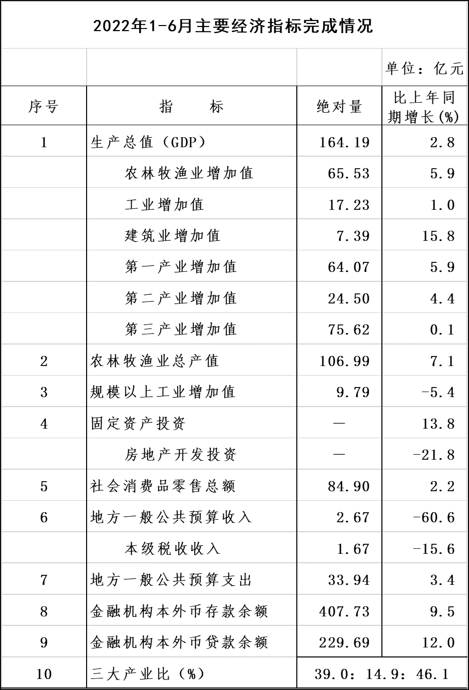(湛江市)雷州市2022年上半年主要經(jīng)濟指標完成情況