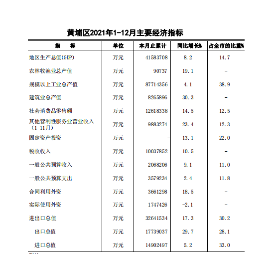 (廣州市)黃埔區(qū)2021年全年主要經(jīng)濟(jì)指標(biāo)