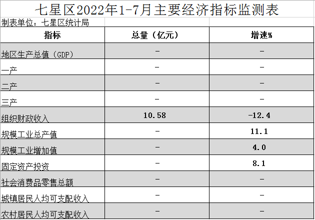 (桂林市)七星區(qū)2022年上半年主要經(jīng)濟指標(biāo)監(jiān)測表