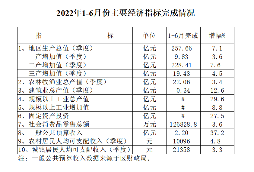(北海市)鐵山港區(qū)2022年上半年主要經(jīng)濟(jì)指標(biāo)表