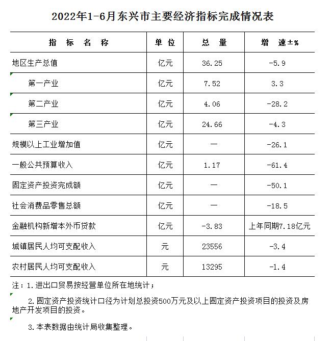 (防城港市)東興市2022年上半年主要經(jīng)濟指標(biāo)完成情況表