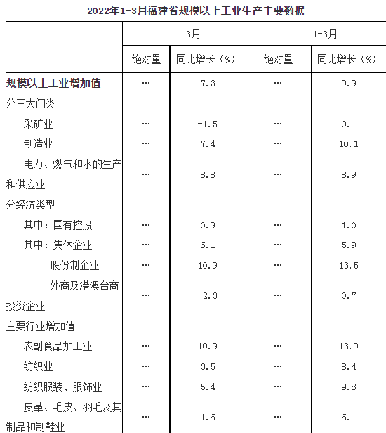 3月份,全省規(guī)模以上工業(yè)增加值同比增長7.3%;1-3月,規(guī)模以上工業(yè)增加值同比增長9.9%。