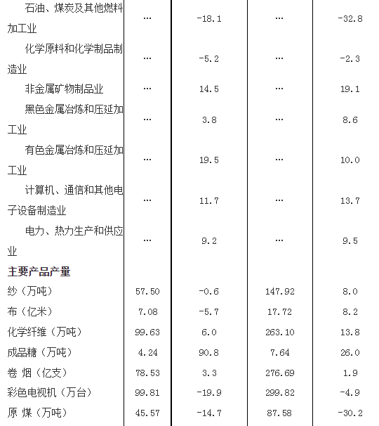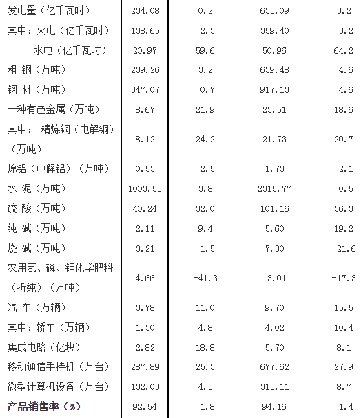 分三大門類看,1-3月,采礦業(yè)增加值同比增長0.1%,制造業(yè)增長10.1%,電力、燃?xì)夂退纳a(chǎn)和供應(yīng)業(yè)增長8.9%。具體分行業(yè)、分產(chǎn)品主要數(shù)據(jù)見下表: