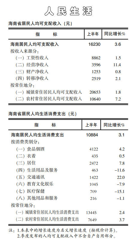 (海南?。?022年上半年居民人均可支配收入和生活消費支出(元)