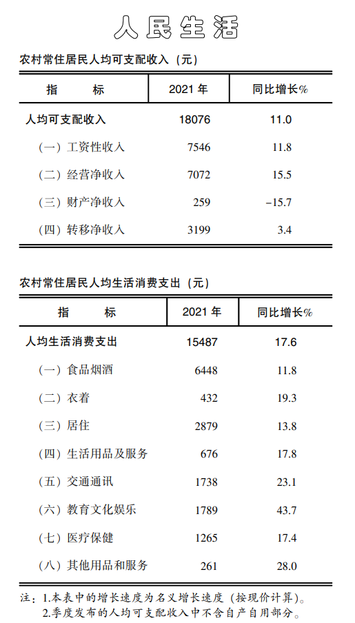 (海南?。?021年農村常住居民人均可支配收入和生活消費支出(元)