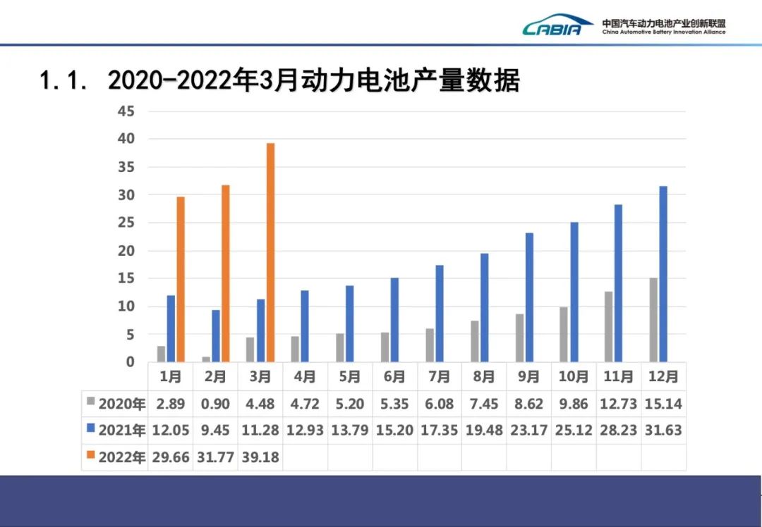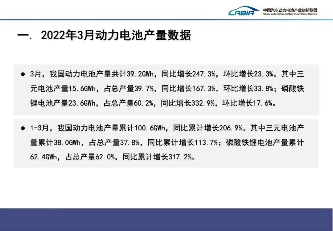 2022年|2022年3月動力電池產(chǎn)量39.2GWh 磷酸鐵鋰23.6GWh 同比增長332.9%
