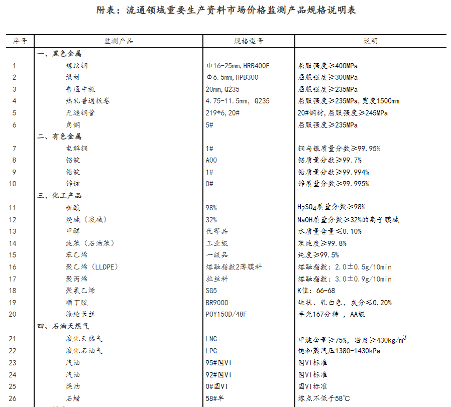 流通領域重要生產資料市場價格監(jiān)測內容包括9大類50種產品的價格。類別與產品規(guī)格說明詳見附表。