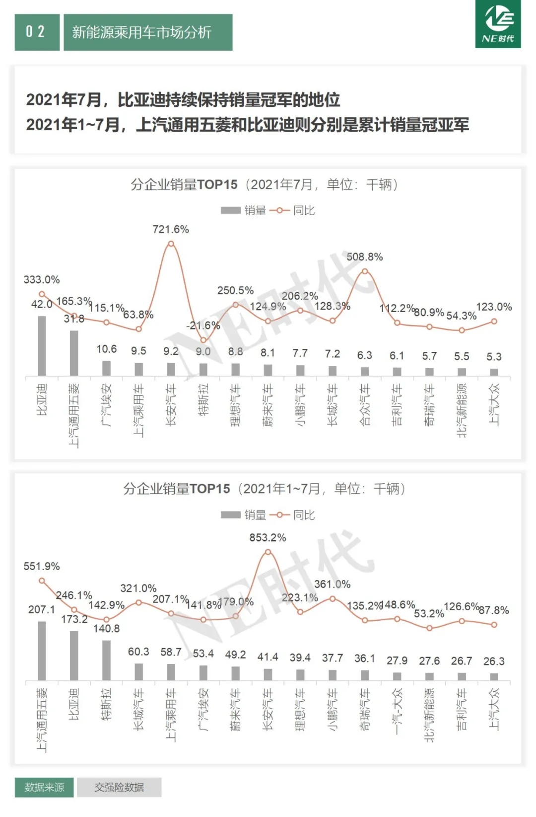 2021年7月,比亞迪持續(xù)保持銷量冠軍的地位;2021年1-7月,上汽通用五菱和比亞迪則分別是累計銷量冠亞軍。