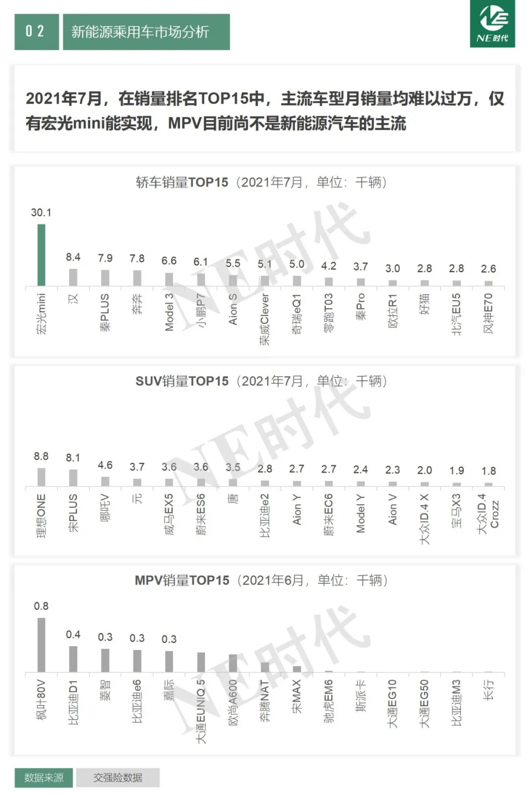 2021年7月,在銷量排名TOP15中,主流車型月銷量均難以過萬,僅有宏光mini能實現(xiàn),MPV目前尚不是新能源汽車的主流。