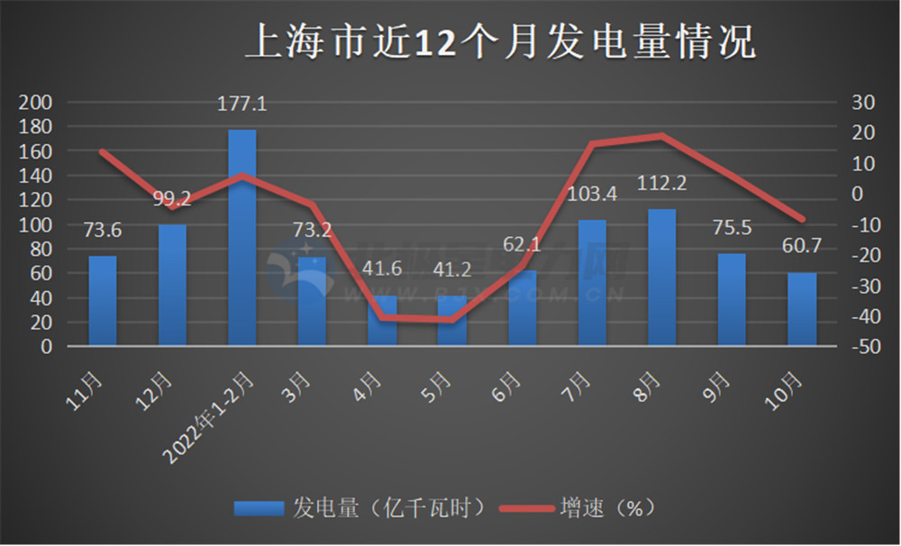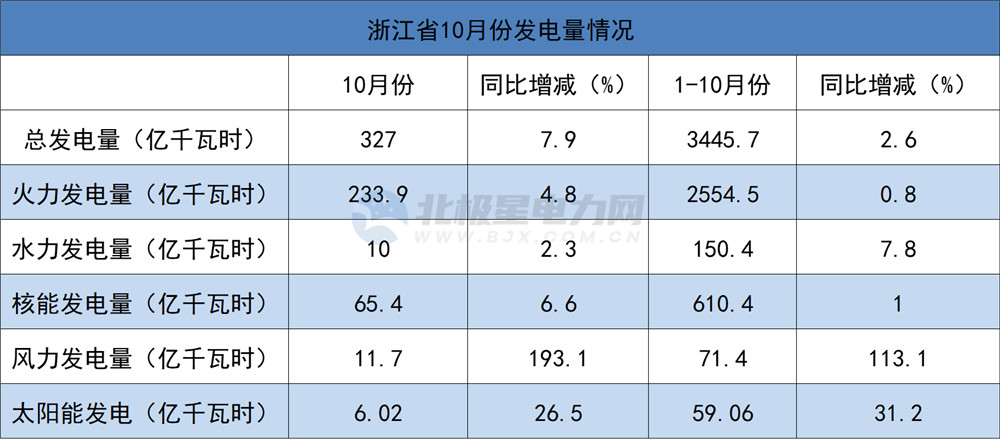 10月份,總發(fā)電量327億千瓦時,同比增長7.9%;其中,火電發(fā)電量233.9億千瓦時,同比增長4.8%;水力發(fā)電量10億千瓦時,同比增長2.3%;風力發(fā)電量11.7億千瓦時,同比增長193.1%;太陽能發(fā)電量6.02億千瓦時,同比增長26.5%;核電發(fā)電量65.4億千瓦時,同比增長6.6%。