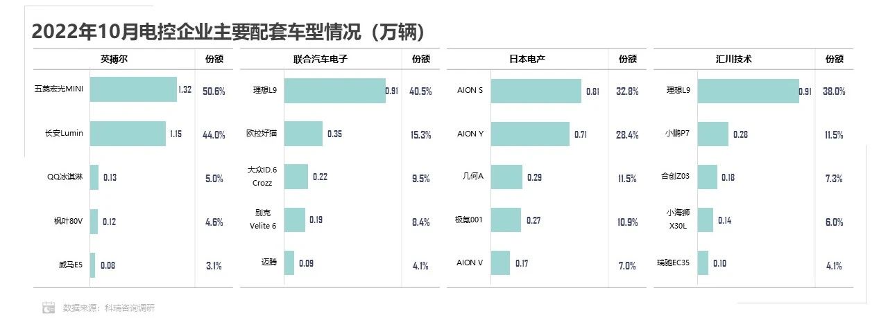 除部分自配企業(yè)外,中高端車型電控配套有向聯(lián)合汽車電子、日本電產(chǎn)、匯川技術(shù)三家集中的趨勢。