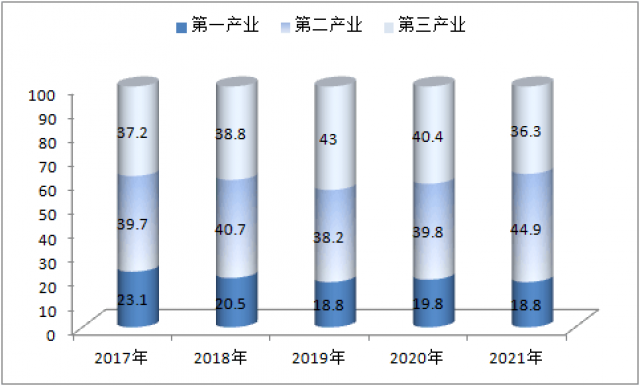 圖2:2017年-2021年三次產(chǎn)業(yè)增加值占GDP的比重