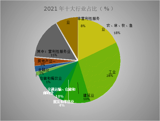 支撐GDP的十大行業(yè)分別為:農(nóng)林牧漁業(yè)、工業(yè)、建筑業(yè)、批發(fā)和零售業(yè)、交通運輸倉儲和郵政業(yè)、住宿和餐飲業(yè)、金融業(yè)、房地產(chǎn)業(yè)、其他服務業(yè)中的營利性服務業(yè)和非營利性服務業(yè)。