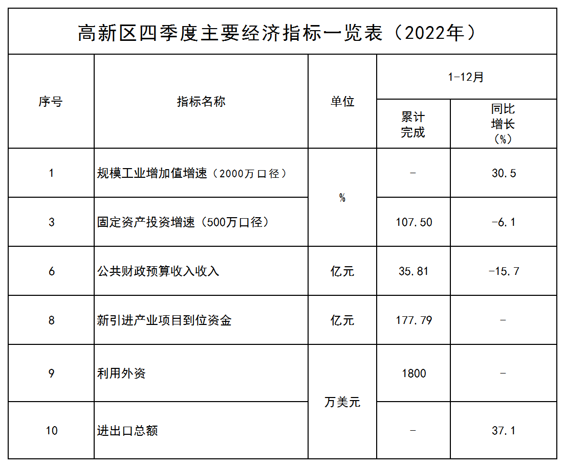 (貴陽市)高新區(qū)2022年主要經(jīng)濟(jì)指標(biāo)完成情況