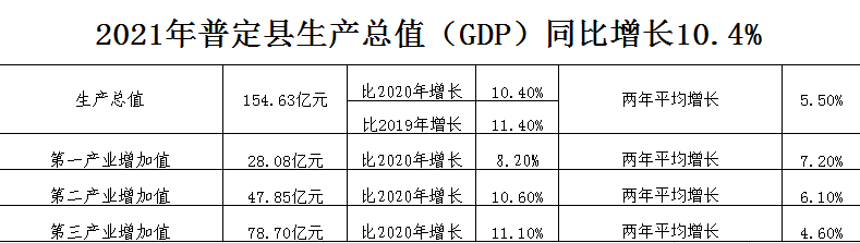 (安順市)普定縣2021年生產(chǎn)總值(GDP)同比增長(zhǎng)10.4%