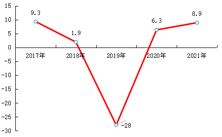 圖3:2017年-2021年規(guī)模以上工業(yè)增加值增速(%)