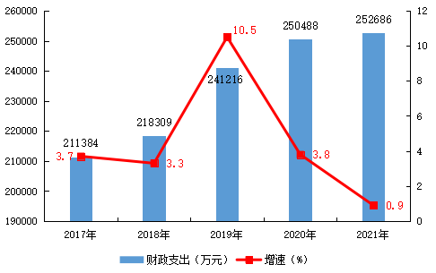 全年財政總收入46300萬元,同比增長7.2%。其中:一般公共財政預(yù)算收入25189萬元,同比增長10.4%;一般公共財政預(yù)算收入中,稅收收入16647萬元,同比增長12.4%;非稅收收入8542萬元,同比增長6.9%。全年一般公共財政預(yù)算支出252686萬元,同比增長0.9%。其中:一般公共服務(wù)支出35056萬元,同比下降0.2%;教育支出52023萬元,同比增長0.1%;科學(xué)技術(shù)支出2963萬元,同比增長0.2%;社會保障和就業(yè)支出25274萬元,同比增長0.1%;衛(wèi)生健康支出24383萬元,同比增長0.1%;節(jié)能環(huán)保支出10518萬元,同比增長44.9%;城鄉(xiāng)社會事務(wù)支出9505萬元,同比下降1.4%;公共安全支出7500萬元,同比下降3.9%。