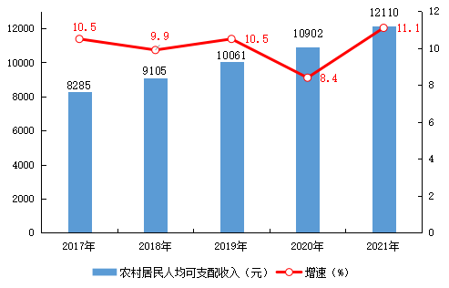 全年農(nóng)村居民人均可支配收入12110元,同比增長11.1%;城鎮(zhèn)居民人均可支配收入36415元, 同比增長8.8%。