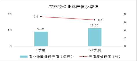 上半年,全縣農(nóng)林牧漁業(yè)總產(chǎn)值11.33億元,按可比價(jià)格計(jì)算,增長6.6%,其中,農(nóng)業(yè)產(chǎn)值6.64億元,增長4.8%;畜牧業(yè)產(chǎn)值4.06億元,增長8.3%。小春糧食播種面積7.5萬畝,實(shí)現(xiàn)夏糧總產(chǎn)量1.05萬噸,小春種植蔬菜6.1萬畝,產(chǎn)量4.83萬噸。生豬存欄19.69萬頭,增長7.4%;肥豬出欄13.67萬頭,增長14%;大牲畜存欄8.69萬頭,增長0.4%。實(shí)現(xiàn)肉類總產(chǎn)量1.6萬噸,增長4.5%。其中豬肉產(chǎn)量1.27噸,增長7%。