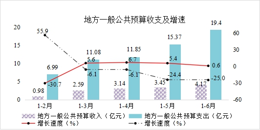 上半年,全縣一般公共預(yù)算收入完成4.17億元,同比增長0.6%,增速高于全州(-31.8%)32.4個(gè)百分點(diǎn),排全州八縣(市)第3位。其中:稅收收入完成2.29億元,同比下降3.7%;非稅收入完成1.88億元,同比增長6.4%。一般公共預(yù)算支出完成19.4億元,同比下降25%,速度低于全州(-6.7%)18.3個(gè)百分點(diǎn),排全州八縣(市)第8位。其中,一般公共服務(wù)、教育、醫(yī)療健康、社會(huì)保障和就業(yè)支出共計(jì)12.48億元,同比下降11.7%。