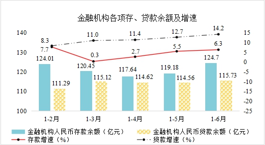 6月末,全縣金融機(jī)構(gòu)各項(xiàng)存貸款余額240.43億元,同比增長10.1%,增速較上月提升1.1個(gè)百分點(diǎn)。其中,各項(xiàng)存款余額124.7億元,同比增長6.3%,增速低于全州(10%)3.7個(gè)百分點(diǎn),排全州八縣(市)第6位;各項(xiàng)貸款余額115.73億元,同比增長14.2%,增速高于全州(9%)5.2個(gè)百分點(diǎn),排全州八縣(市)第2位。